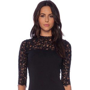Black dress with lace detail. In great condition, only worn once. 61% rayon, 33% nylon, 6% spandex.40% cotton, 35% nylon, 25% viscose. Unlined. Back zippered closure. Handwash cold or dry clean.