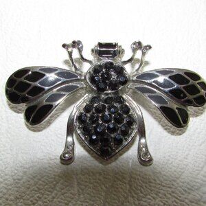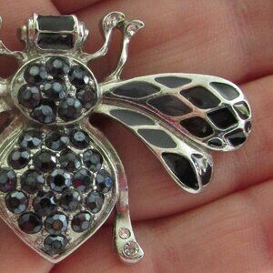 Silver and black bee brooch