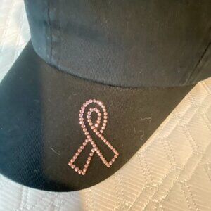 Black Baseball Cap with Pink Crystal Breast Cancer Awareness Ribbon. NWOT Orders over $100 will receive one free.