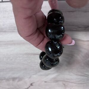 Elegant black beaded bracelet with a ribbon detail. Perfect for any occasion.