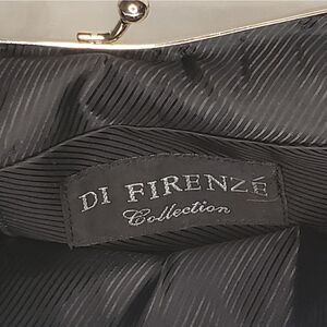 Vintage 80s, designer, "Pieces of Florence", silver toned interlocking chain and snap button closure, black pinstripe lining, Excellent Vintage Condition.