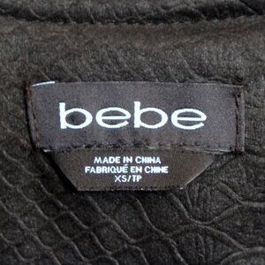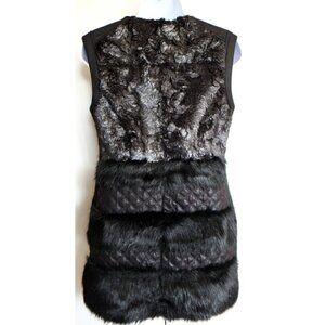 This fun and fabulous Bebe vest is one of their best, a mix of faux furs and skins: black reptile-embossed leather, black and silver rabbit, quilted black leather, and black fox
