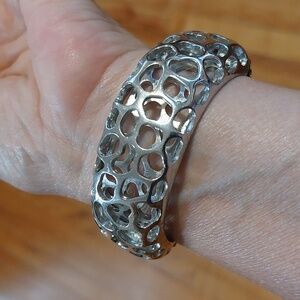Nice quality piece. Well made and can be worn either side up. Oval shaped bangle so won't spin on wrist. Amazing sparkle!!