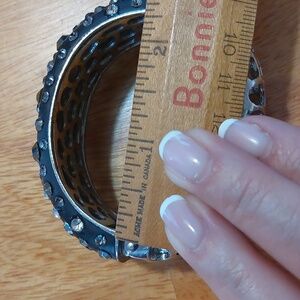Black Blingy Crystal Studded Clamper Hinged Bangle Bracelet Silvertone