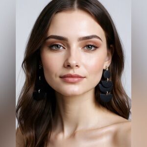 Make a sleek statement with these handcrafted matte black polymer clay earrings. Designed with a circular top and cascading half-moon shapes, these beauties bring a modern, geometric edge to any look. Their smooth matte finish gives them a minimalist yet bold touch — perfect for dressing up or keeping it effortlessly chic.