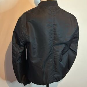 Stylish black bomber jacket perfect for any occasion. Features a sleek design with a comfortable fit.