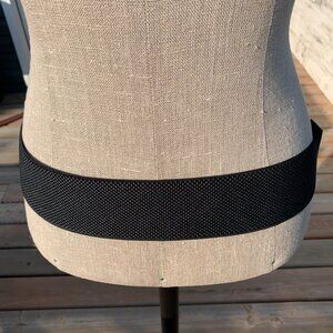 Black Braided Faux Leather Elastic Back Wide Statement Cinch Belt