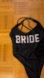 Celebrate your special day with this chic black 'Bride' swimsuit. Perfect for beach outings and poolside parties.