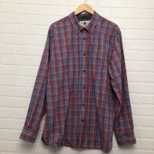 Black Brown 1826 100% Cotton Plaid Button Down Shirt Men XL Red Blue