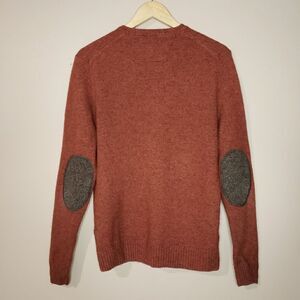 Black Brown 1826 Medium Long Sleeve Brown Rust Lambswool V-Neck Sweater Patches