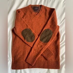Black Brown 1826 Orange V-Neck Sweater with Elbow Patches. Small unisex