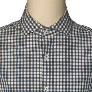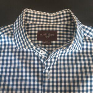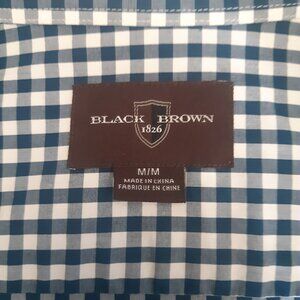 Black Brown 1826 SZ M Navy & White Gingham 100% Cotton Men's Button Up Shirt
