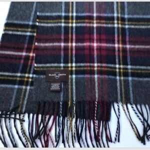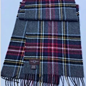 Black Brown 1826 long scarf classy gray & burgundy plaid 100% cashmere