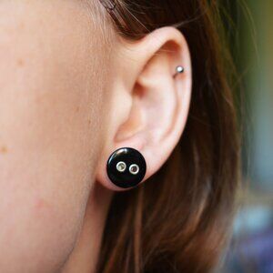 An adorable pair of minimalistic black button stud earrings. Handmade from upcycled buttons and hypoallergenic stud posts, these are the perfect little accessory to add to your collection. Lightweight and great for all-day wear.
