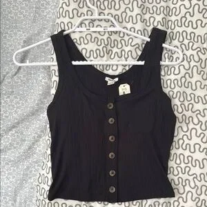Stylish black ribbed tank top with button-down front. Perfect for casual outings. Small. NWT