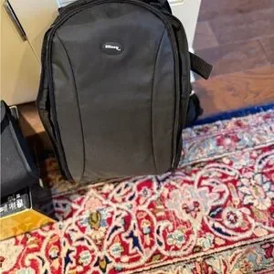 Sleek black camera backpack with multiple compartments. Ideal for photographers on the go. Never used. Made by Ultimaxx.