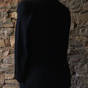 Black cardigan with pleated bottom and tie neck. Vintage 60's feel.