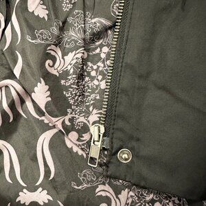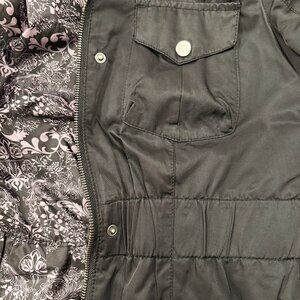 Black Casual Jacket Womans Size Small Full Zip Hidden Hood Elastic Waist
