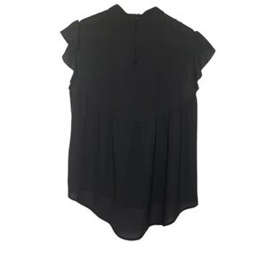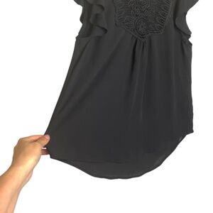 Beautiful blouse, flutter sleeves, crochet front detail, back keyhole opening.