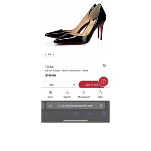 Beautiful pair of Iriza heels in black 36.5 and 85mm height. These shoes are in great condition and almost look like new since they were only used twice. No scratches on surface and no stains inside. These shoes still have new shoe smell since they were hardly used. The bottom of shoes have slight scratches as shown on pics. The shoes do not have a box or dust bag. Retails for $1,085 + tax