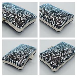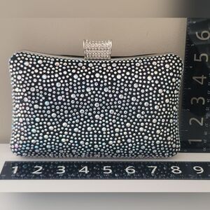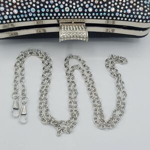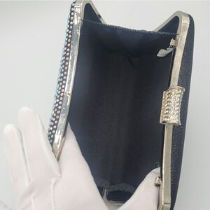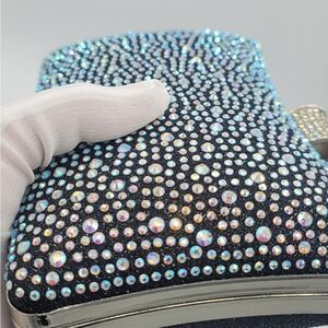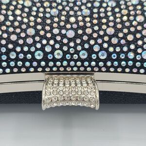 Black Clutch Bag Crystal Aurora Borealis Sparkle Silvertone Strap #551
