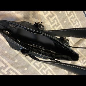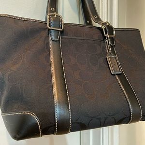 Authentic Very good used condition classic tote bag in black with leather handles and trim. Some signs of wear on the corners and a small white mark. All shown in pictures. You can wear it zipped or open. Great as a everyday carryall.