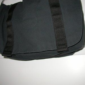 Black Converse laptop bag - 2 quilted slots with velcro security tab - fold over flap with 2 snaps - 20" side to side - 6" wide - carrying handle - 36" adjustable shoulder strap - external zippered pocket with a tether clip - 100% cotton exterior - 100% polyester ling - new, never used