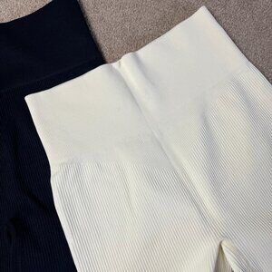 Black & Cream Ribbed Knit 2 Pack Biker Shorts Women's Size Small NEW