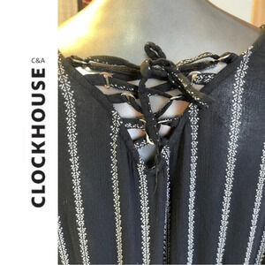 Short sleeve striped casual dress with back lace up tie detail. Gathered waist. This is a European size 54 which according to their website is an XXL