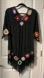This boho-style black crochet cover-up dress features vibrant, hand-embroidered-style floral details in pink, yellow, green, and blue. Lightweight, breathable, and slightly stretchy for a comfortable fit.