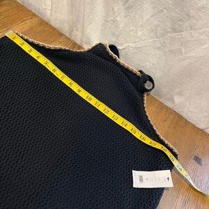 Gorgeous black crochet dress by JOIE, style Ellie, in size XL. Features contrasting beige trim along the neckline and armholes, with thick straps and a straight silhouette.