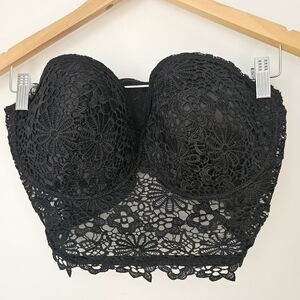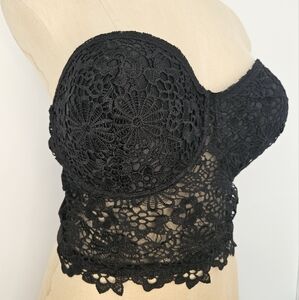 Black Crochet Lace Bustier Corset Top XXL Strapless Longline Sweetheart