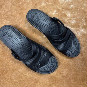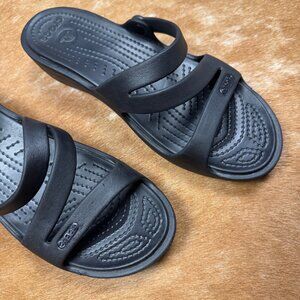 Black Crocs Strappy Wedge Sandals Size 8 Comfort Slip On Slide Lightweight