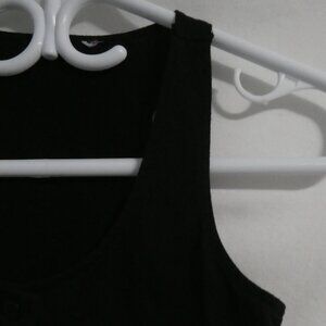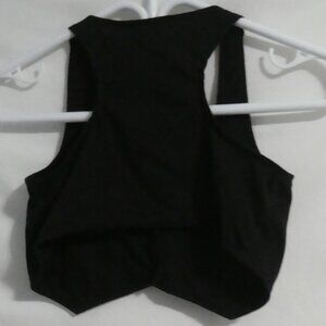 A sleek black cropped vest with a buttoned front and a fitted silhouette
