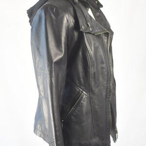 Black Danier Leather Jacket with Removable Hood