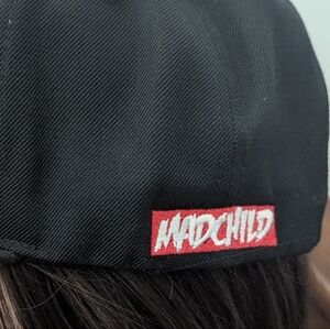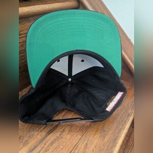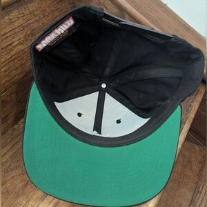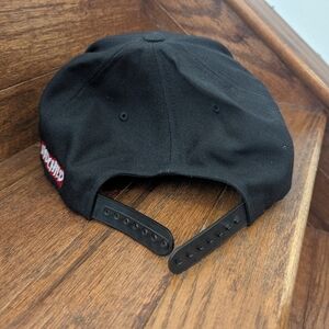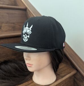 black snapback hat with Viking skull graphic. Worn once or never. trace friction wear to inner crown.