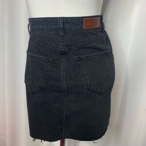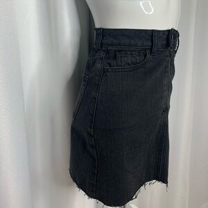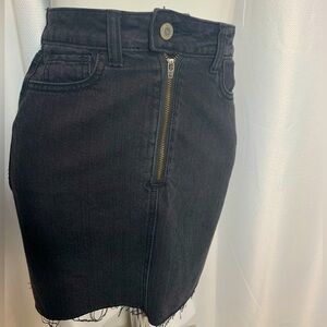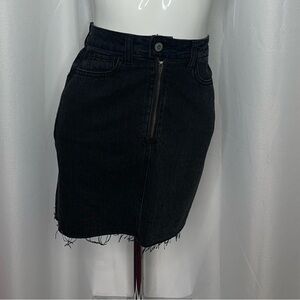 Chic black denim skirt with a stylish front zipper. Perfect for casual outings or a night out.