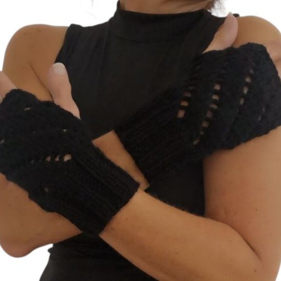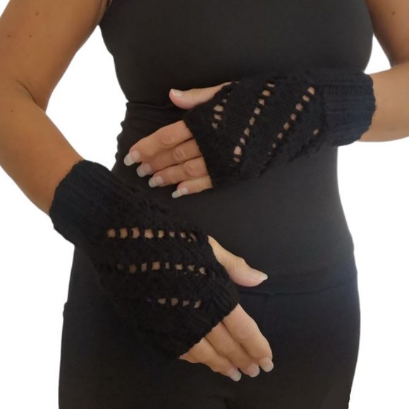 Black Diagonal Eyelets KnitFingerless Texting Gloves Product of Canada