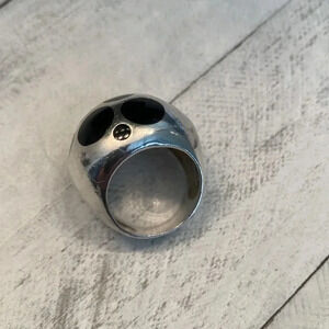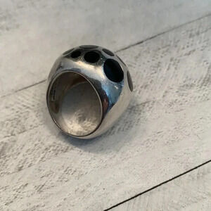 A statement piece! I love this ring. Size 8. Sterling silver dome ring with black inlay circles. A heavy ring.