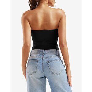 🆕 Black Double Lined Strapless Tube Top Fitted Nylon Going Out Shirt Women’s