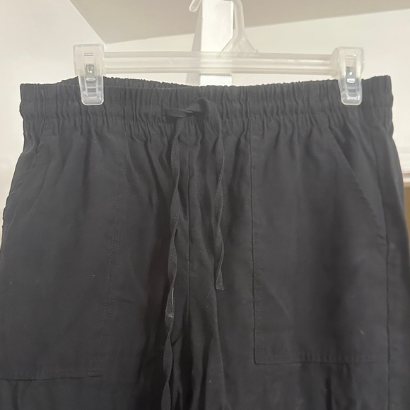 Comfortable black drawstring pants with pockets.