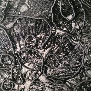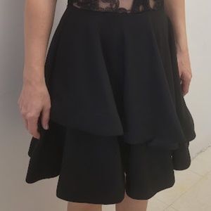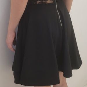 Black Dress with Lace Bodice and polyester/spandex bottom. Gold Zipper detail in the back.
