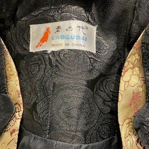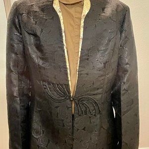 Pure Silk Jacquard Jacket Black with Gold trim.