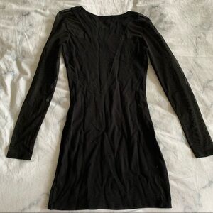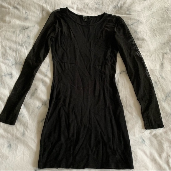 A black dress from Forever 21 with mesh sleeves and mesh details along the waist. Worn a handful of times but in excellent condition. Bodycon style, size medium.