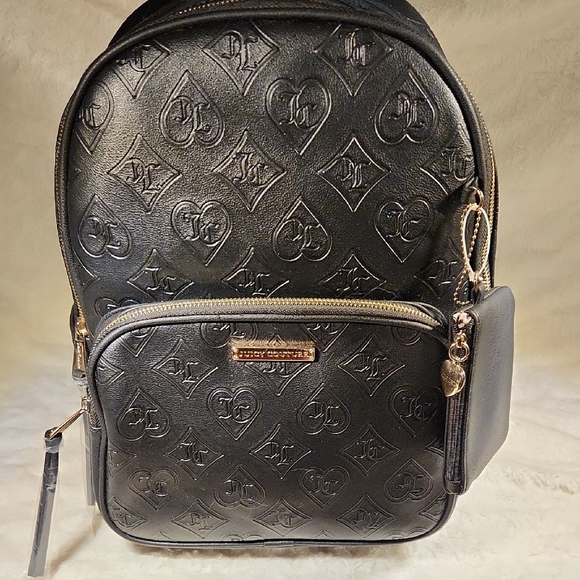 Brand new Juicy couture Stylish black embossed backpack perfect for everyday use. Features a sleek design with ample storage space.