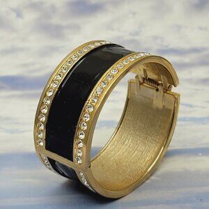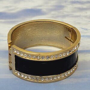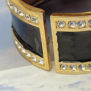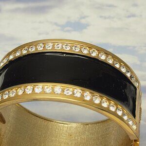 Black Enamel and Gold Tone Hinged Crystal Bracelet