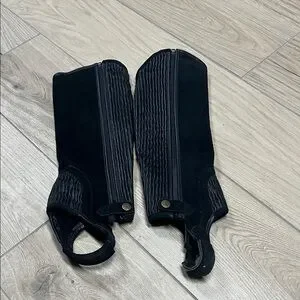 Enhance your riding experience with these stylish black equestrian half chaps. Designed for comfort and durability.