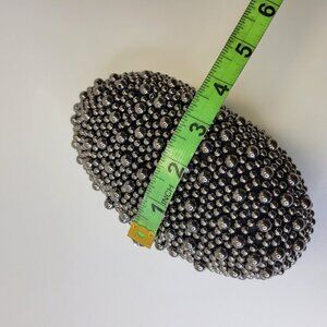 Pewter Beaded Small Oval Clutch Handbag