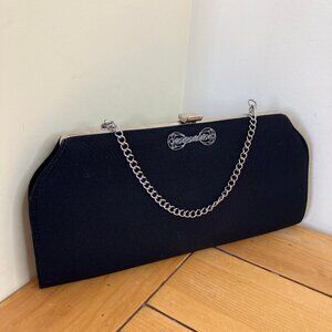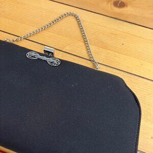 Black Fabric Clutch Purse w/ Silver-tone Decoration Vintage Chain Strap Handbag