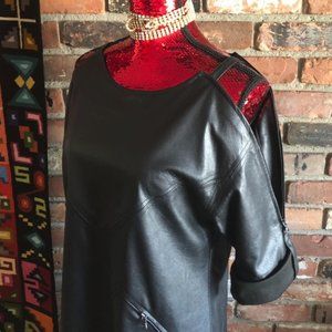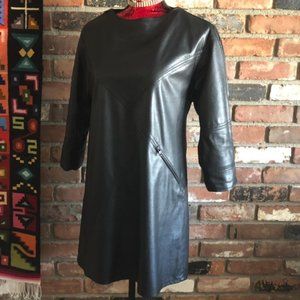 Black Faux Leather Cold Shoulder BCBG Maxazria Shift Mini Dress W/ Pockets XS